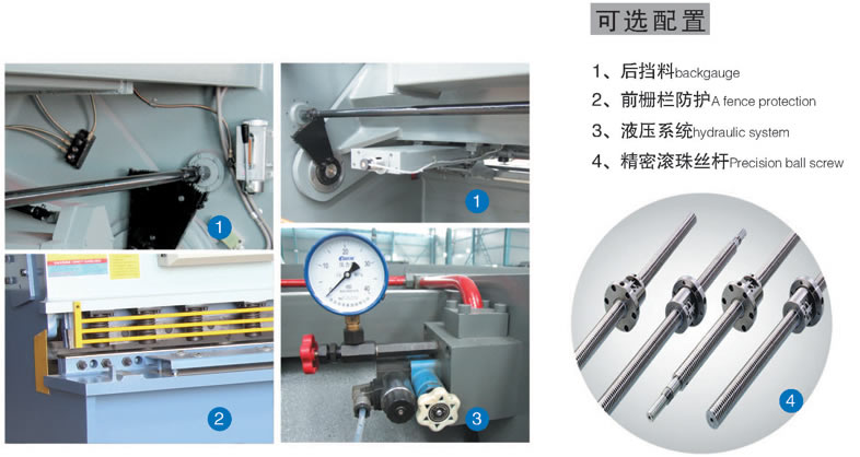 1.面板控制 2.高亮度LCD顯示器 3.后擋料控制 4.退讓功能 5.剪切角控制 6.剪切空隙控制 7.剪切行程控制 8.壓力控制 9.各軸可手動移動 |